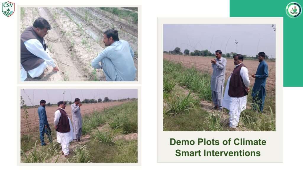 • The SAWiE team, in collaboration with the Climate Smart Village Initiative (CSVI) and Bank Alfalah Limited, recently conducted a field visit to a demonstration plot to evaluate the real-world impact of climate-smart agricultural practices.